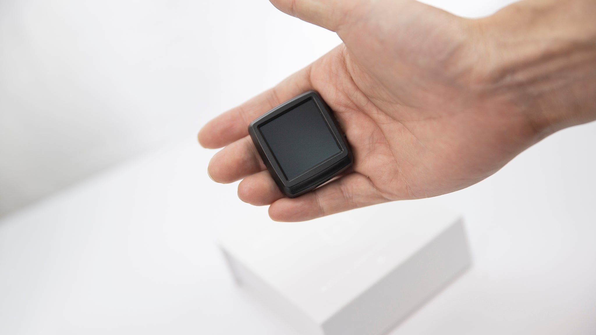After numerous experiments, we decided upon a square display. This design allows for a more natural palming of the device as well as for ease of viewing with a larger display.
